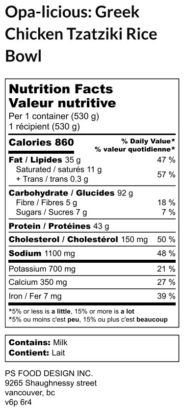 Hover For Ingredients Rossdown Halal Chicken breast, house made teriyaki sauce (gluten free tamari, filtered water, honey, organic raw coconut sugar, rice vinegar, sesame oil, fresh ginger, garlic, cornstarch), white rice, broccoli, green onion, sesame seeds5.00 out of 5$20.25 Customize Login or Register to Buy -